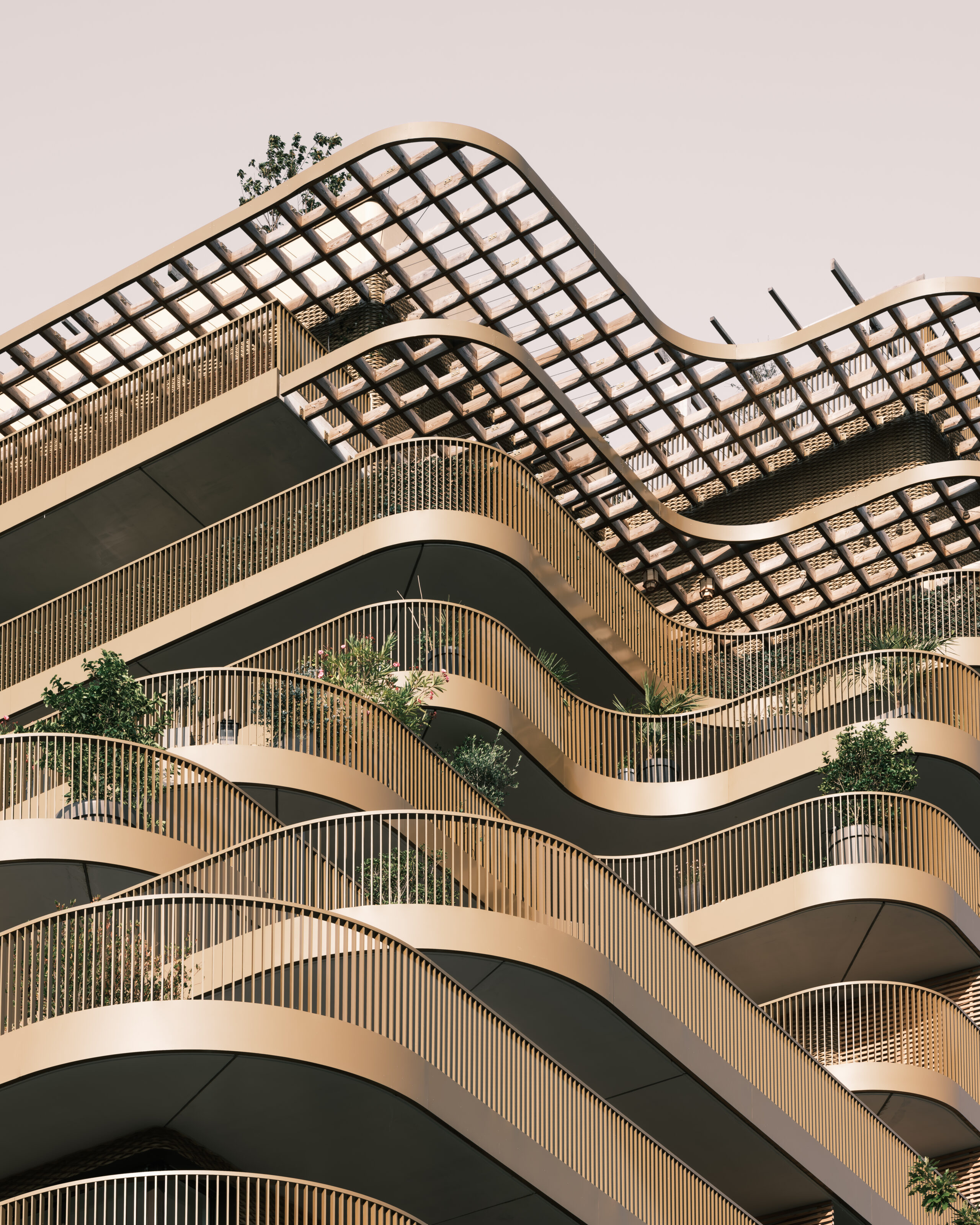 Les dessous des balcons sont souvent négligés, mais c’est ce qui compose l’espace public. Nous pensons les balcons comme de véritables espaces verts, tels des jardins suspendus. En introduisant un système de tunnel, la nature peut se développer verticalement à partir de bacs à fleurs et vivre sur ces dessous. Le paysage crée aussi une certaine intimité grâce aux cloisons plantées des balcons. Le paysage est aussi une affaire de partage, c’est pourquoi le projet d’habitation dispose également d’un jardin commun sur le toit, d’une superficie de 400 m², avec des serres et des bacs à plantes, plus ou moins grandes, permettant de cultiver une grande variété de fruits, de légumes, de plantes et de fleurs. Ces espaces deviennent une jonction entre l’individuel et le collectif.